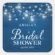 Rustikaler quadratischer Aufkleber aus Brautparty mit Leuchten in Maurerkrümeln und Lichterketten mit dem Wort "Brautparty" vor einem blauen Holzmuster-Hintergrund. Es ist der perfekte Aufkleber für ein rustikales oder landschaftliches Brautparty. Karo die passende Einladung und Artikel wie Aufkleber und Briefmarke hier https://www.zazzle.com/collections/rustic_wood_mason_jars_and_lights-119202204970019494?rf=238364477188679314 Personalisieren Sie sie, indem Sie den Platzhaltertext ersetzen, um Ihre Informationen hinzuzufügen. Für weitere Optionen klicken Sie auf die Schaltfläche "Anpassen". *Bitte beachten Sie, dass das Zazzle-Wasserzeichen, das in der Zoomvorschau angezeigt wird, NICHT auf dem gedruckten Endprodukt erscheint. © Rosewood and Citrus