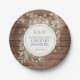 Rustikales Holz Monogram Grünpaare Dusche Pappteller