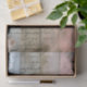 Schöner rustikaler Look auf diesem Papiertaschentuch, ideal für Entkundung, Geschenkverpackung oder zum Befüllen von Geschenktaschen. Rustikales Holz und blassfarbene Blume. Alte Schrift.