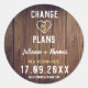 Rustikales Holz Custom Foto Eleganter Wechsel der Pläne Klassischer Rundaufkleber, damit Ihre wertvollen Gäste es einfach auf ihren Kalendern und Planern Briefmarke können und nicht vergessen, Ihr neues Hochzeitstag