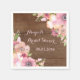Brautparty-Servietten in rustikalem Landholzmuster mit hellrosa Vintagen Aquarellfarben-Wildblumen.
