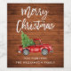 Rustikales Holz Pinselschrift Wasserfarbe Vintager roter LKW mit Weihnachtsbaum - Weinflaschen Etikett