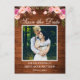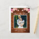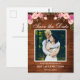 Rustikale Wood Foto Verlobung Hochzeit Ankündigung Save the Date Postcard beinhaltet florfarbene Rose und Grün. Weiße Rahmen.