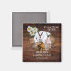 Ein rustikales Holzdesign Save the Date Magnet mit eigenem Foto und weißen Rosen.