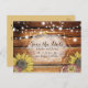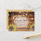 Diese rustikale, Save the Date Postkarte besticht durch einen Holzboden mit schönen Buchstaben und Vintagen Sonnenblumen.