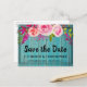 Diese hübsche, rustikale Save the Date Postkarte ist mit einem blauen Holzboden und einer trendigen Typografie mit einem Blumenstrauß in der Rose in Aquarellfarben mit grüner Laube dekoriert. Passen Sie den Schriftart und die Farbe des Textes Ihren Wünschen an.