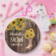 Rustikales Holz mit hellgelben Sonnenblumen, Cowboystiefel und goldgelben Glitzer 90. Geburtstag Party Papier Teller personalisiert mit Ihrem Namen und Alter.