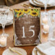 Rustikales Holz Sonnenblumen String Lights Hochzei Tischnummer