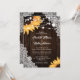 Diese elegante und romantische Hochzeitseinladung mit Sonnenblumen vor einem Stallholz und Spitzen-Hintergrund lädt Ihre Gäste zu einem von Sonnenblumen inspirierten Hochzeitsfest in der ländlichen Umgebung/im Hinterhof/in der Scheune ein.