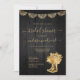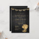 Diese moderne rustikale Brautdusche lädt mit einem Imitat mit Goldfolie-Spitzen-Banner Hochzeit und Kontur zeichnend von einem Cowboystiefel voll mit Sonnenblumen auf einem dunklen, schwarzen Hintergrund. Die Wörter "Brautparty" und der Name der künftigen Braut erscheinen in elegantem goldfarbenem Handschriftzeichen mit Swashes am Anfang und Ende. Fügen Sie die Duschdetails in Sans Serif Schriftart. (Um die Swashes behalten, ersetzen Sie nur die Buchstaben in diesen Textfeldern, indem die Symbole verlassen werden.)