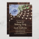 Rustikales Holz String Lights Blue Floral Sweet 16 Einladung