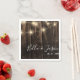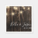 Rustikales Holz String Lights Hochzeitspapier Napkin. Das Design hat Imitat aus Holz mit Lichtern aus der Saite. Für weitere Anpassungen können Sie den Namen und das Hochzeitsdatum ändern. Kontaktieren Sie mich bitte unter mypaperlove2021@gmail.com