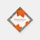Rustikales Holz und Blätter, Papierservietten aus Hochzeit im Herbst. Rot / orangefarbene Ahornkronen-Blätter, Baumbellrahmen, um mit den Namen der Braut und Bräutigam und ihrem Heiratsdatum zu personalisieren.
