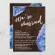 Rustikales Holz und blaues Hydrangea Wir sind Verh Einladung