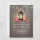 Alte rustikale Stallholz-Abschlussfeier mit der Vintagen Metalllaterne mit Kerze, rosa und weiße Blume und romantischen Streicheldraht