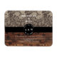 Rustikales Holz und Spitzen Monogramm Save the Date. Hochzeit. Moderner Schriftart. Magnet.