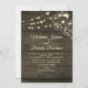 Elegante, moderne Kalligrafie rustikale Holzverheiratung Einladung mit Monogramm auf der Rückseite, Saitenleuchten und Imitats goldenen Blumenspitze.