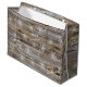 Rustikales Holz und weiße Schneeflocken Frohe Weih Große Geschenktüte