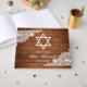 Bar oder Bat Mitzvah Gästebuch. Rustikaler Stil mit Holzvertäfelungen und weißer Spitzendekoration. In unserem Shop sind weitere Artikel in diesem Stil erhältlich. Sie können das Design weiter bearbeiten, Farben, Schriftart ändern und zusätzlichen Text hinzufügen, indem Sie auf den Link "Weiter anpassen" klicken.