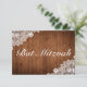 Rustikales Holz und weiße Spitzen Bar Bat Mitzvah RSVP Karte