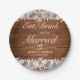 Rustikales Holz und weiße Spitzen essen Drink Verh Pappteller