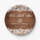 Rustikales Holz und weiße Spitzen Hochzeit Jahrest Pappteller