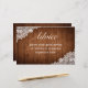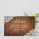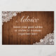 Empfehlungskarte für Hochzeiten. Rustikaler Stil mit Holzvertäfelungen und weißer Spitzendekoration. In unserem Shop sind weitere Artikel in diesem Stil erhältlich. Sie können das Design weiter bearbeiten, Farben, Schriftart ändern und zusätzlichen Text hinzufügen, indem Sie auf den Link "Weiter anpassen" klicken.