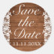 Rustikales Holz und weiße Spitzen Save the Date Ho Runder Aufkleber