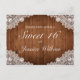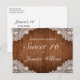 Sweet 16 Geburtstagsparty Postcard Einladung. Rustikaler Stil mit Holzvertäfelungen und weißer Spitzendekoration. In unserem Shop sind weitere Artikel in diesem Stil erhältlich. Sie können das Design weiter bearbeiten, Farben, Schriftart ändern und zusätzlichen Text hinzufügen, indem Sie auf den Link "Weiter anpassen" klicken.