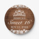 Rustikales Holz und weiße Spitzen Tiara Sweet 16 Pappteller