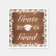 Stilvolle Graduierungsparty Papierservietten. Rustikaler Stil mit braunen Holzplanken und weißer Spitzendekoration. In unserem Shop sind weitere Artikel in diesem Stil erhältlich. Sie können das Design weiter bearbeiten, die Hintergrundfarbe ändern, Schriftart hinzufügen und durch Klicken auf "Diese Vorlage personalisieren" und dann auf "Weitere Einstellungen vornehmen" den Link "Weitere Einstellungen vornehmen" anklicken.