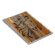 Farbenfrohe Holzplatte auf einer Diagonale überlagert mit einer Pferdekopf-Kontur.