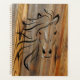 Farbenfrohe Holzplatte auf einer Diagonale überlagert mit einer Pferdekopf-Kontur.