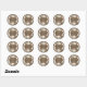 Rustikales Holz Weiße Blumenpalme Grüne Foliage Brautparty Klassischer Rundaufkleber für Umschlag Aufkleber, Gaumenbeutel oder andere Brautparty Dekoration verwendet. Dunkelbraune Holzbretter aus gestresstem und verwittertem Braunholz verzieren das zarte, wasserfarbene Kunstwerk aus eleganten Orchideen, khaki-braunes Palmenblättern, boho-artigen getrockneten tropischen Blätter und gedämpftem Salbeifarn-Kranz. Copyright, Audrey Jeanne Roberts.