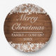 Rustikales Holz & weiße Spitzen Frohe Weihnachten Pappteller