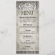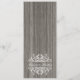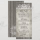 Dieses auffallende Teelängenmenü von meiner "rustikalen hölzernen mit Filigran geschmückten" Sammlung kennzeichnet das lichtdurchlässige Weiß, das über einem rustikalen grauen Woodgrainhintergrund mit Filigran geschmückt ist. Der Körper des Menüs ist Set gegen eine Platte des gealterten grauen Pergaments. Verwenden Sie "besonders anfertigen es" Knopf, um Ihren eigenen Text auf dem hinteren und das vorder vom Menü hinzuzufügen. Zusammenpassende Hochzeitseinladungen, Save the Date Karten, Bevorzugungsaufkleber, danke Karten, UAWGwartekarten, Porto-Briefmarken und mehr sind- auch verfügbar. Für Fragen emailen Hilfe oder kundenspezifische Anträge, mich: glamprettyweddings.com/contact. "Rustikaler hölzerner mit Filigran geschmückter" ursprünglicher Entwurf durch Cheryl Daniels © 2014.