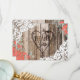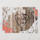 Rustikale Atem- und Koralle Hydrangea-Blumen des Holzes mit weißer Spitze und der Herzradierung und -Babys danken Ihnen zu kardieren.