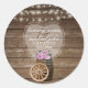 Rustikales Holzfass Hochzeit mit rosa Blume Runder Aufkleber