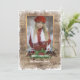 Einzigartige, klassische, trendige, hübsche und dekorative Urlaubskarte mit einem hübschen, dunkelroten und grünen Blumenkranz. Mit Raum, um sich anzupassen oder personalisieren mit einem Foto und Namen (oder Familienname) Ihrer Wahl auf einem rustikalen Hütte Stil verwitterten Bauernhof Holzplanken Textur Muster. Und eine anpassbare Saison Gruß Gedicht auf der Rückseite der Karte.