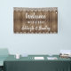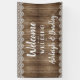 Begrüßen Sie Ihre Hochzeitsgäste mit diesem personalisierten Willkommensschild mit einem rustikalen, verwitterten Holzfußboden mit Spitzen-Rahmen. Ideal für Außen-, Scheune-, Land-, Western- oder lässige Hochzeitsfeiern oder Empfänge (Sie können den Veranstaltungstitel für Hochzeitsfeier oder Hochzeitsempfang bearbeiten oder für jeden Anlass. Ändern Sie den Stil, die Farbe oder die Größe des Schriftartes, indem Sie auf den Reiter CUSTOMIZE klicken. Kontaktieren Sie den Designer, wenn Sie dieses Design modifiziert oder auf einem anderen Produkt haben möchten.