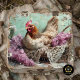 Fügen Sie Ihren Projekten eine Touch Vintagen Charmes hinzu mit diesem schönen decoupage Papierdesign. Dieses Kunstwerk mit einer gefleckten Henne, die sich anmutig in einem rustikalen Korb aus Weidengeflecht mit zarter, weißer Spitze und umgeben von duftenden lila Blüten ausruhen, spiegelt das Wesen der Landeleganz wider. Der weiche, türkisfarbene Hintergrund und die romantischen Töne machen es zu einem idealen Ort für Hochzeiten im Bauernhof, Heimwerker, Geschenkpackungen oder Dekorationen. Eine einzigartige und künstlerische Ergänzung, um Ihre kreativen Bemühungen zu steigern.