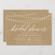 Unsere rustikale, elegante Brautdusche mit einem kraftvollen Hintergrund mit weißen Lichterketten über der Oberseite, und "Brautparty" in chic Kalligraphie Schrift Typografie. Personalisieren Sie Ihre Brautparty- und Registrierungsdaten in weißer Schrift.