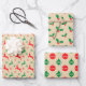 Dieses rustikale altmodische Verpackungspapier kommt als Set von 3. Eine davon sind rote und grüne Schneeflocken und Rentiere, eine hat heilige Blätter und rote Beeren und eine hat antike Weihnachtsschmuck.
