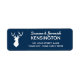Rustikales Country Blue und White Deer Address Labels Ihre Einladungen, Dankeschön, Ferienkarten und andere E-Mails werden besonders aussehen mit diesem Design. Rustikales Landblau mit einer auffallend weißen Buckdecke Silhouette in der Ecke. Passen Sie Ihren eigenen Namen und Ihre eigene Adresse an. Entworfen von Cedar und String; bitte kontaktieren Sie uns, wenn Sie Fragen haben oder Hilfe benötigen.