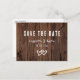 Individuell rustikale Hochzeit Save the Date Postkarten mit Stallholzhintergrund. Einfach diese rustikale strukturierte Hochzeit personalisieren, speichern Sie das Datum Postkarten mit Ihren Hochzeitsdetails.
