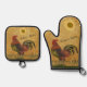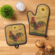 Rustikales Land Proud Rooster Personalisierter Nam Ofenhandschuh & Topflappen-Set