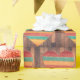 Wunderschönes jeden Anlaß-Verpackungspapier mit holzverputztem Hintergrund und einem mit Regenbogenfarben verzierten Herz in den Farben Rot, Blau, Gelb/Orange.