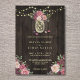 Eine wunderschöne rustikale Hochzeitseinladung mit rosa Rose in Aquarellfarben, einem Glaskeramikglas und Streichelleuchten auf einem dunklen Holzhintergrund. Die Karte kehrt zu einem kleinen Blumenstrauß in der Mitte zurück. Sie können den Schriftart beliebig anpassen oder Ihre eigene Nachricht hinzufügen. Diese Einladung ist Teil einer wunderschönen, passenden Hochzeitssuite, die vollständig personalisiert sein kann.