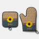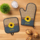 Rustikales Land simuliert Burlap Denim Sonnenblume Ofenhandschuh & Topflappen-Set