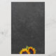 Elegante rustikale Hochzeitsempfehlung mit einem schönen Sonnenblumenstrauß auf dunkelgrauem Kalkboard-Hintergrund. Ideal für Ihren Sommer oder Herbst im eleganten rustikalen Garten im Freien Hinterhof thematische Hochzeiten.